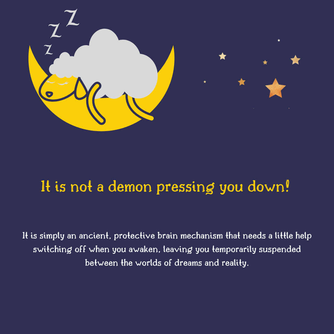 Breathe and Use Self-Talk: Ground yourself by reminding yourself, "This is REM atonia, it is temporary, I am safe." Reducing panic can help shorten the episode.