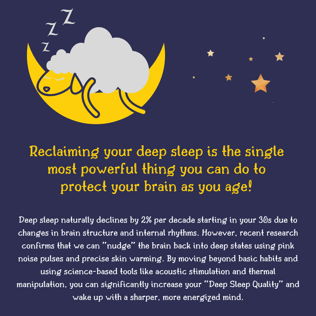 Do you wake up feeling like you barely slept, even after eight hours in bed? You aren't alone. As we age, our "Deep Sleep Quality" often takes a nosedive, leaving us foggy, forgetful, and fatigued. While most experts tell you to "stop drinking coffee" or "buy better curtains," those basic tips rarely solve the real biological problem. In this article, you will discover why your brain’s architecture changes after age 30 and learn advanced, research-proven methods—like sound-syncing and skin warming—to rebuild your deep sleep and protect your brain for years to come.