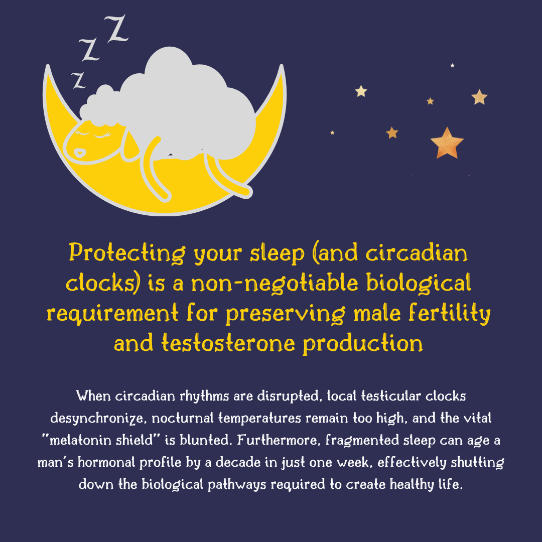 Have you ever thought about that the decline in your (or your partner’s) sperm counts may be directly tied to our increasingly "circadian-disrupted" lifestyle? When you browse apps or internet on your phone or tablet late at night, or spend your work week sleep-deprived and try to "catch up" on weekends, you are actually putting your reproductive system into a state of emergency.