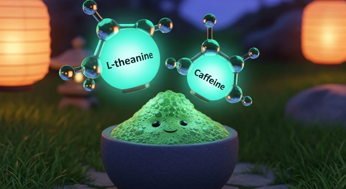 The "calm" of matcha is further explained by L-theanine’s role as a structural analog to glutamate.